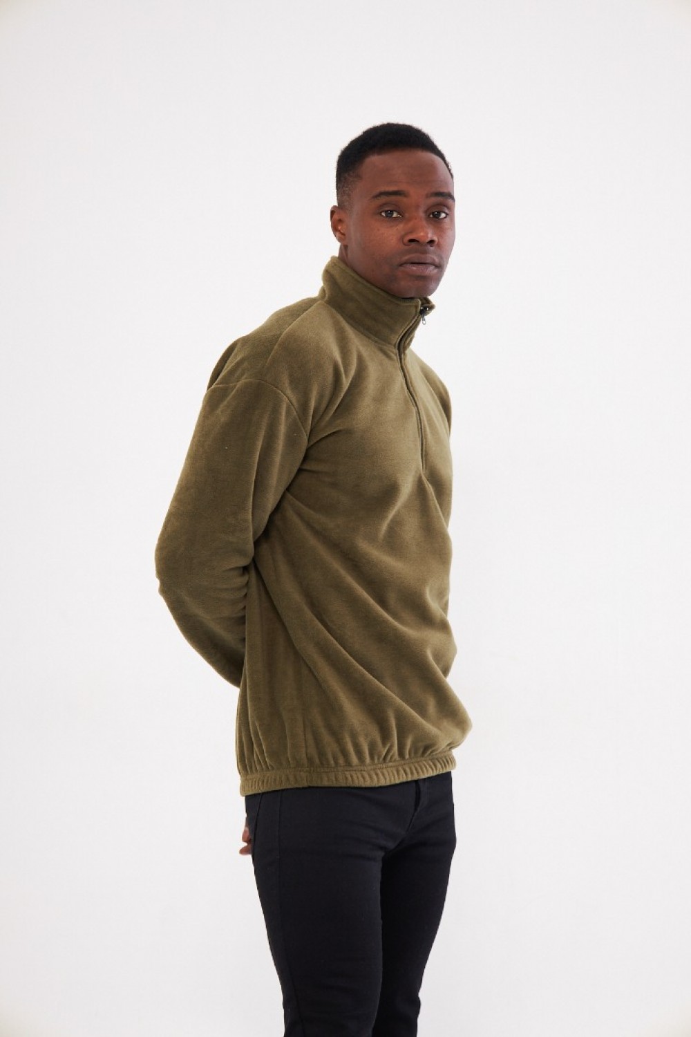 Erkek Oversize Haki Polar Sweatshirt